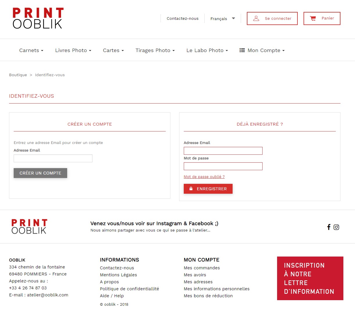Tout commence par la création d’un compte. Avec votre email et un mot de passe, vous pourrez enregistrer vos projets, suivre les commandes, etc.